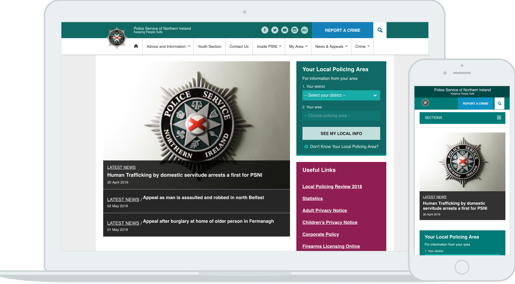 Police Service of Northern Ireland (PSNI) wanted to have the leading digital strategy of any police service in the UK and Ireland. To achieve this, they needed a new best–in–class website to form the foundation of their strategy. Their new website, which launched in February 2016, made that vision a reality.